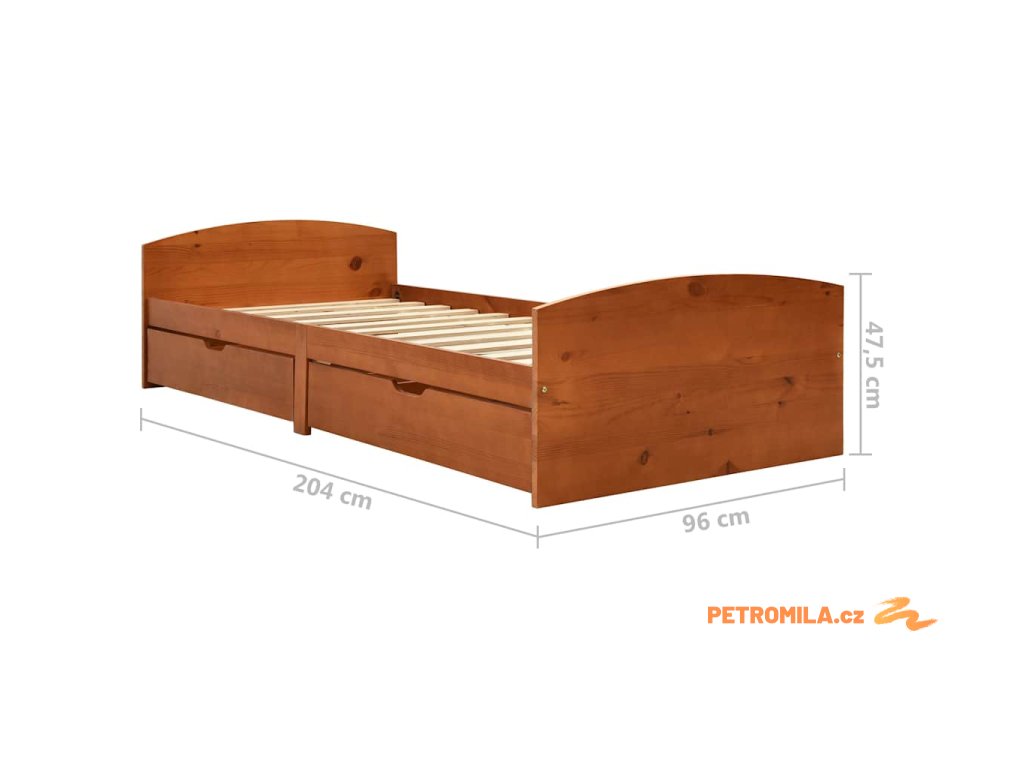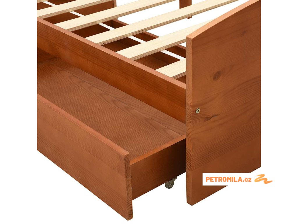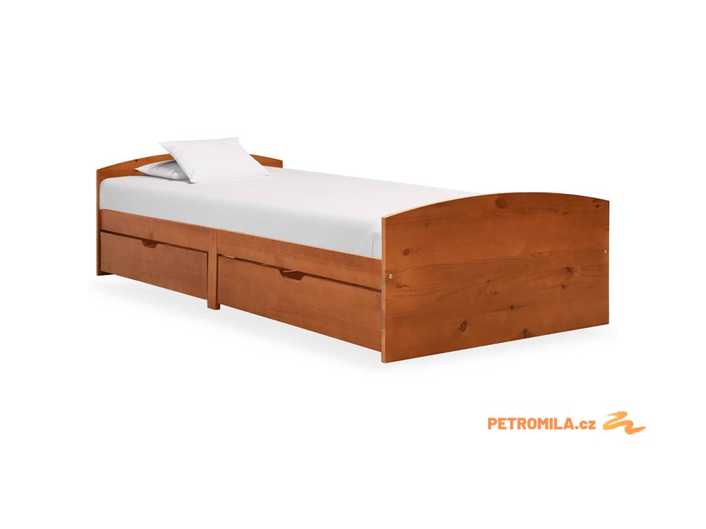 Rám postele 2 zásuvky medově hnědý masivní borovice 90 x 200 cm