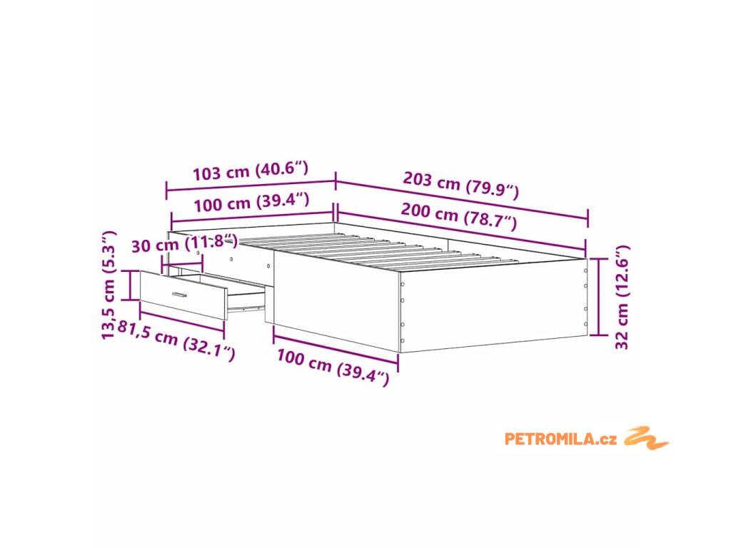 - Velikost matrace: Široké jednolůžko (100 cm x 200 cm nebo 39" x 79")