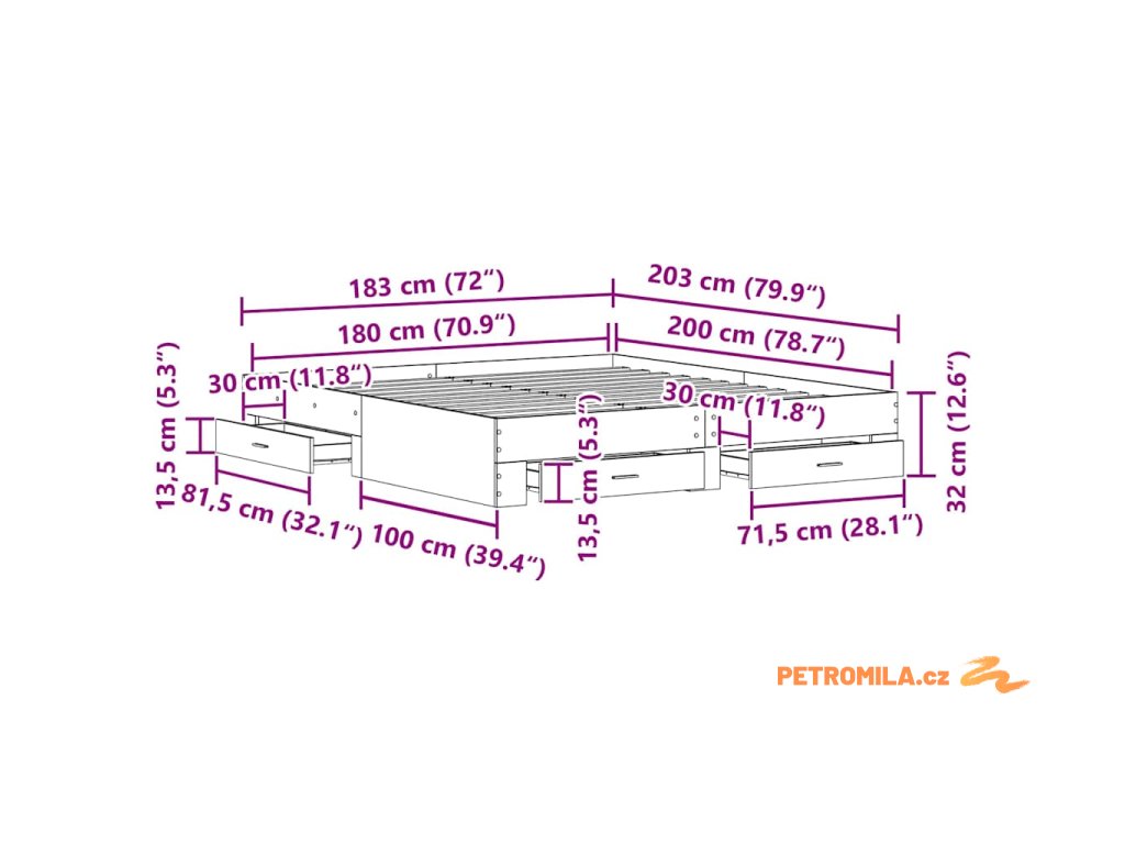 - Velikost matrace: Super king manželská postel (180 cm x 200 cm nebo 71" x 79")