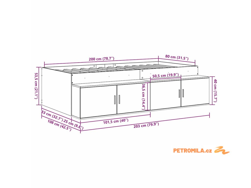 - Velikost matrace: Malé jednolůžko (80 cm x 200 cm nebo 31" x 79")