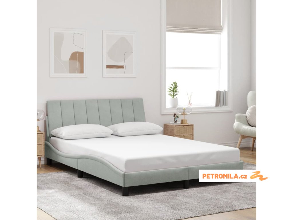 Rám postele bez matrace Hanko světle šedý 140 x 190 cm samet