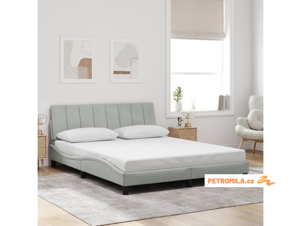 Rám postele bez matrace Hanko světle šedý 160 x 200 cm samet