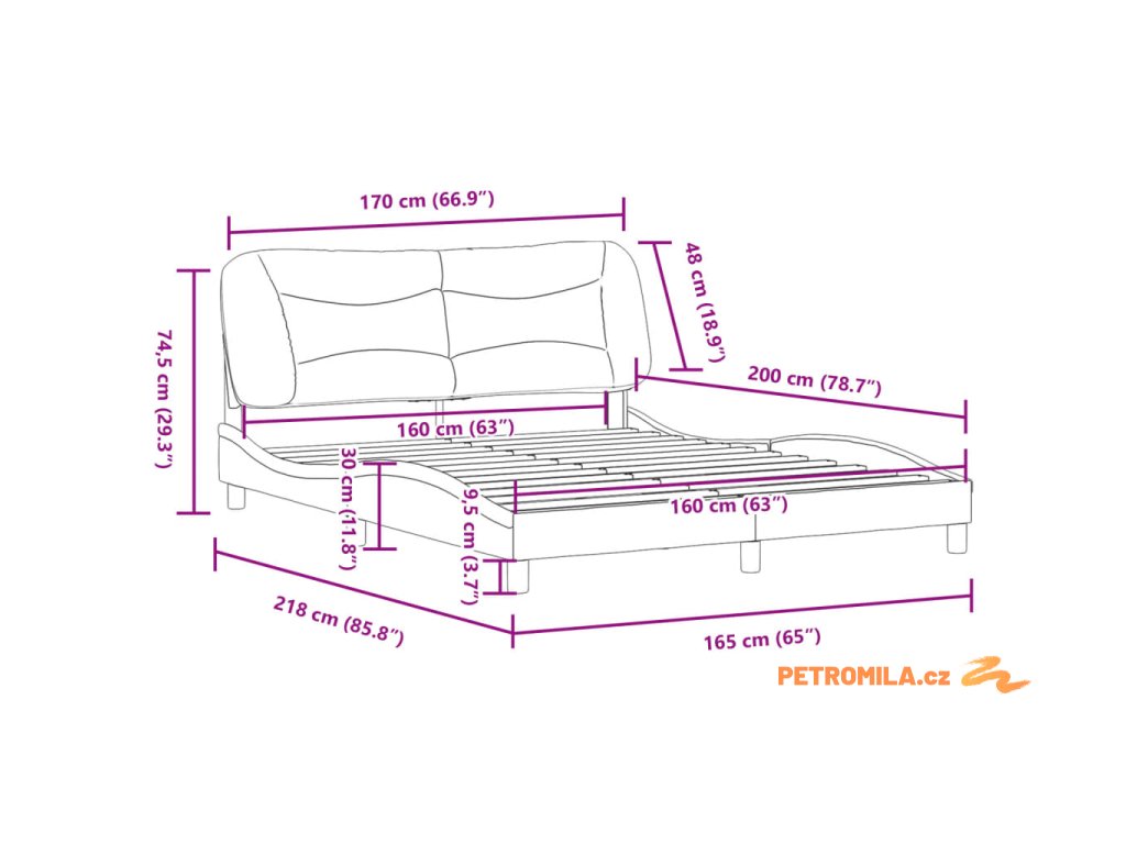 - Celkové rozměry: 218 x 165 x 74,5 cm (D x Š x V)