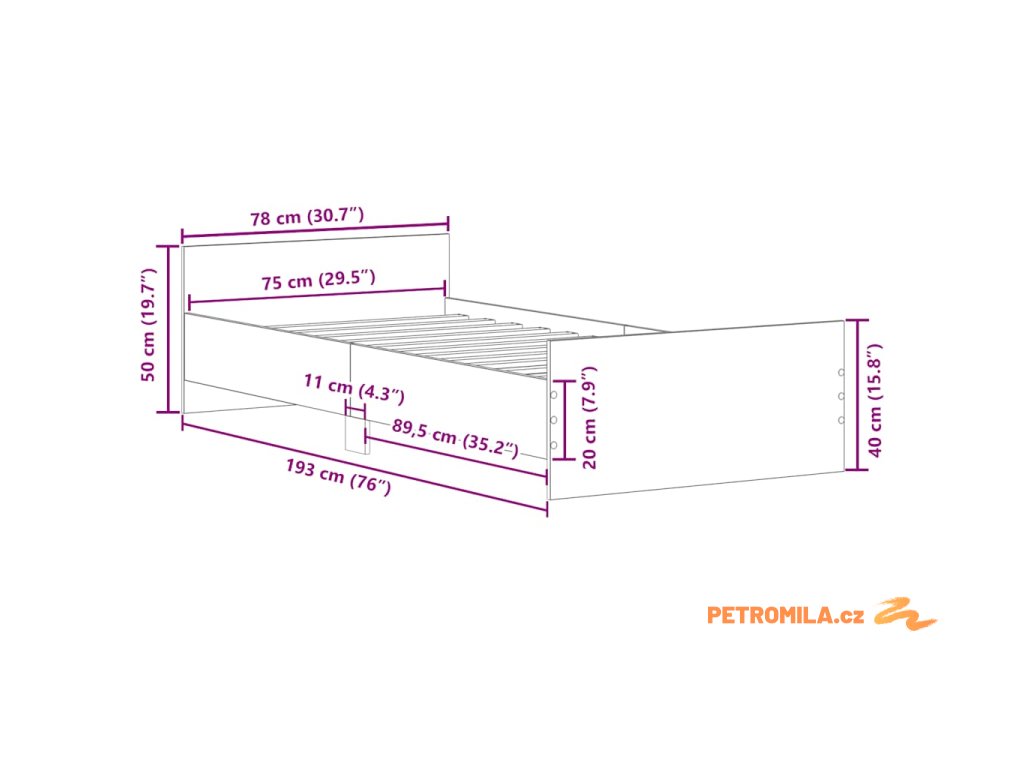 Rám postele bez matrace kouřový dub 75x190 cm kompozitní dřevo