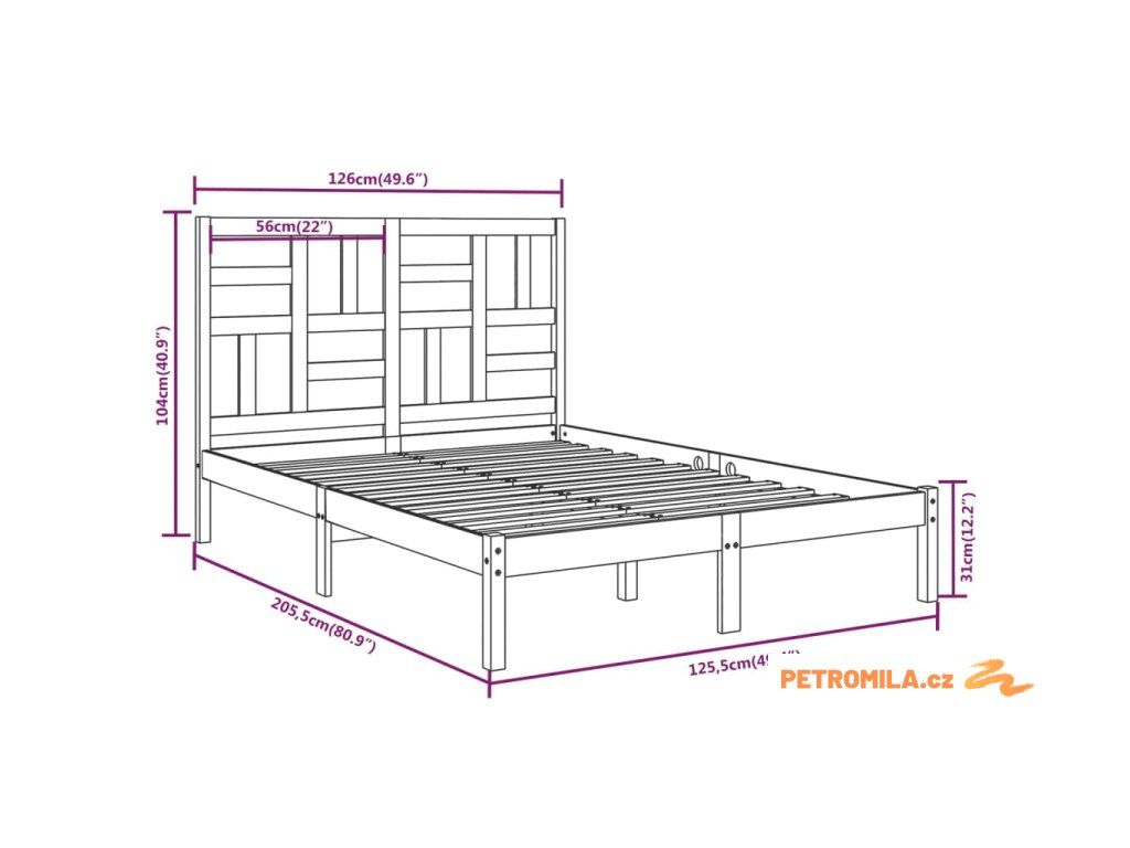 - Rozměry čela postele: 126 x 4 x 104 cm (Š x H x V)