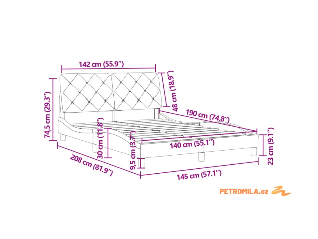 - Vhodná velikost matrace: 140 x 190 cm (Š x D) (matrace není součástí balení)