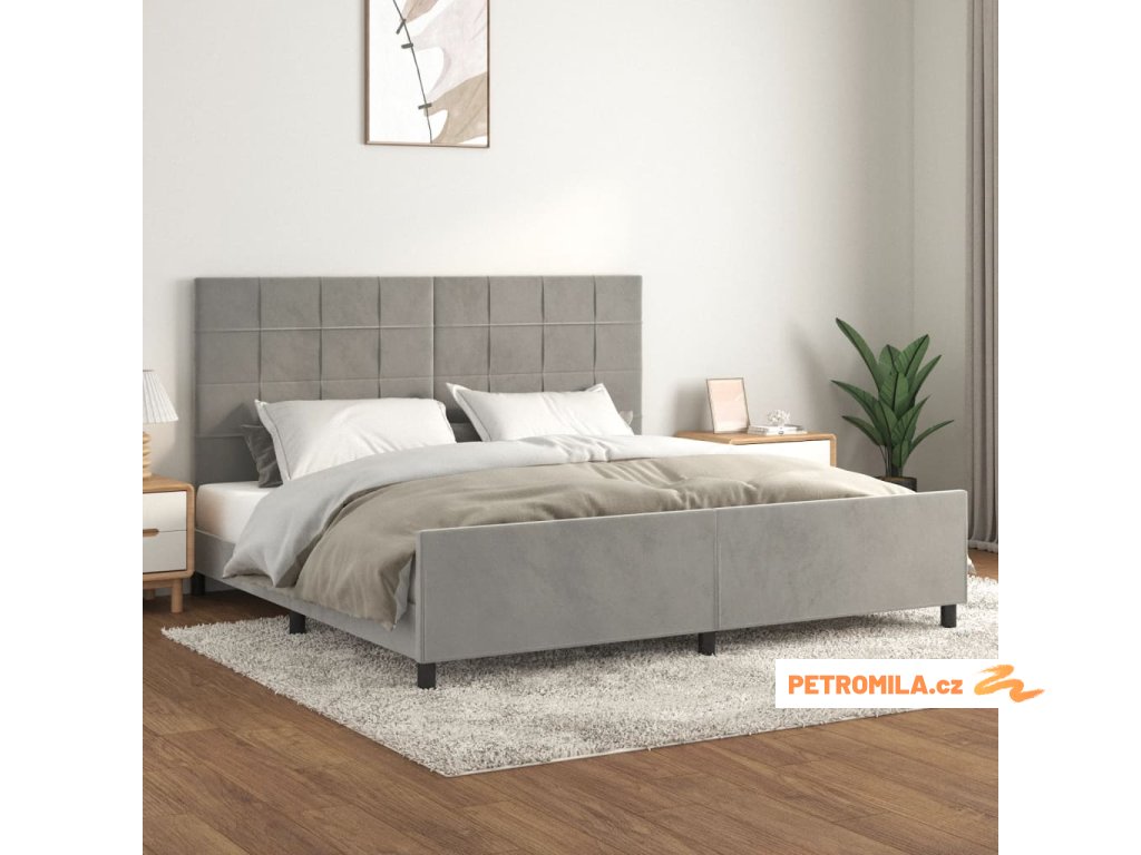 Rám postele bez matrace světle šedý 200 x 200 cm samet
