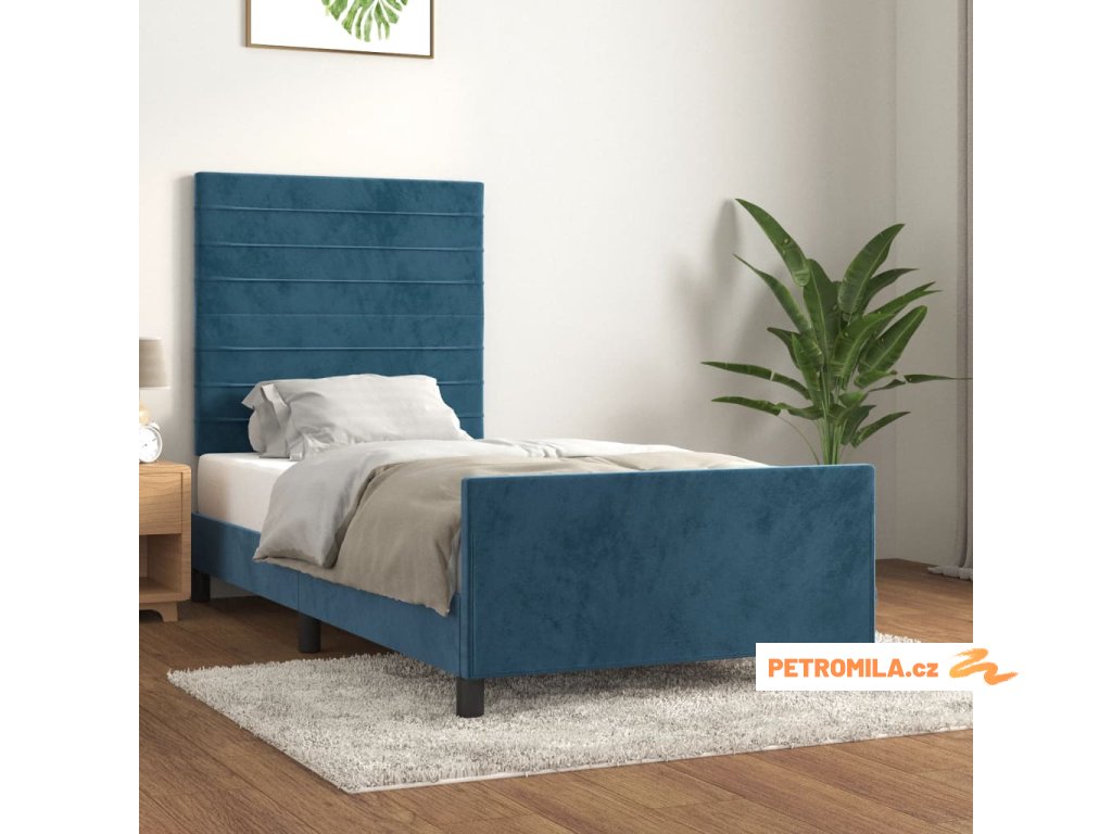 Rám postele bez matrace tmavě modrý 100x200 cm samet