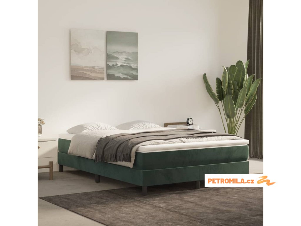 Rám postele bez matrace tmavě zelená 140 x 190 cm samet
