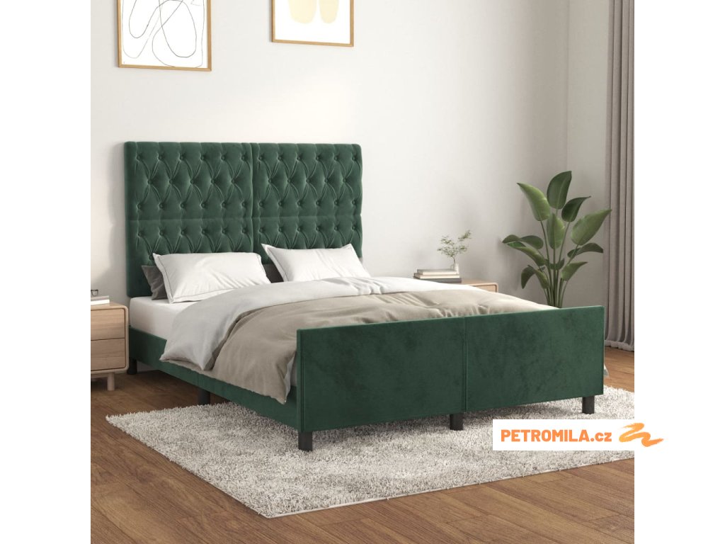 Rám postele bez matrace tmavě zelená 140 x 200 cm samet