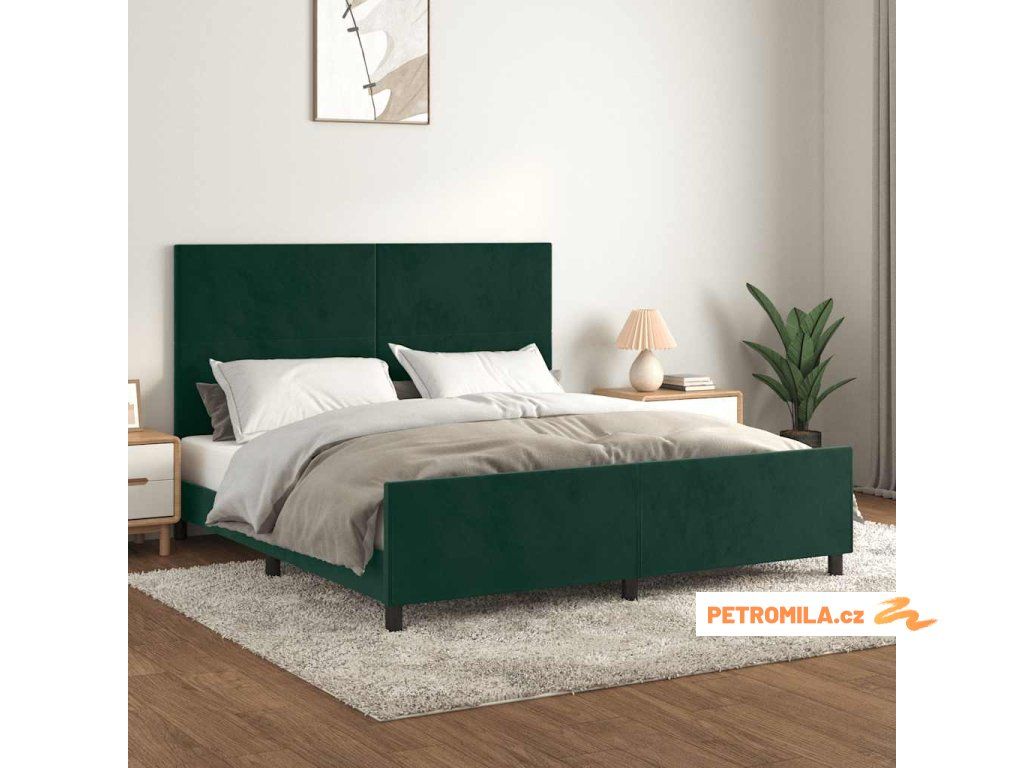 Rám postele bez matrace tmavě zelená 160 x 200 cm samet