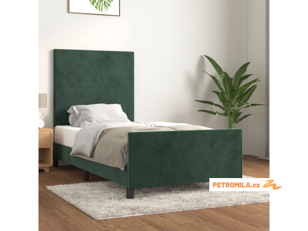 Rám postele bez matrace tmavě zelená 90 x 190 cm samet