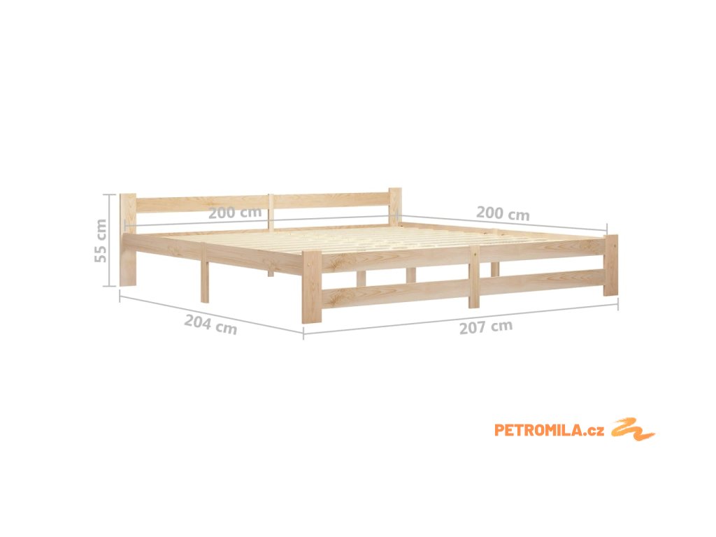 Rám postele je vyrobený z masivního borového dřeva, je tedy mimořádně pevný a má dlouhou životnost. Pevné překližkové lamely nabízejí potřebnou podporu a pohodlí. Je vhodný pro matraci o rozměrech 200 x 200 cm.