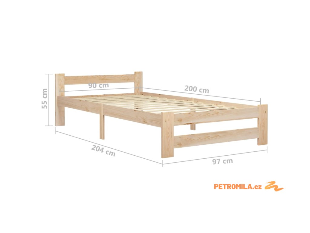 Rám postele bez matrace z masivního borovicového dřeva 90x200cm