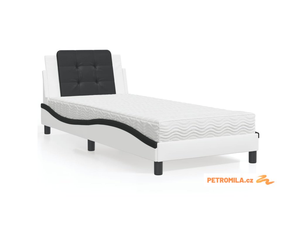 Rám postele bez matrace Zadar bílá a černá 90 x 190 cm umělá kůže