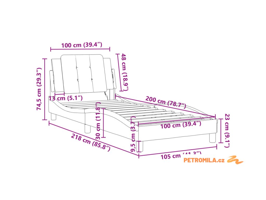 - Vhodná velikost matrace: 100 x 200 cm (Š x D) (matrace není součástí balení)