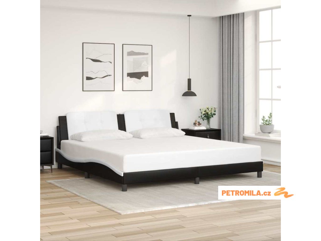 Rám postele bez matrace Zadar černý a bílý 200 x 200 cm umělá kůže