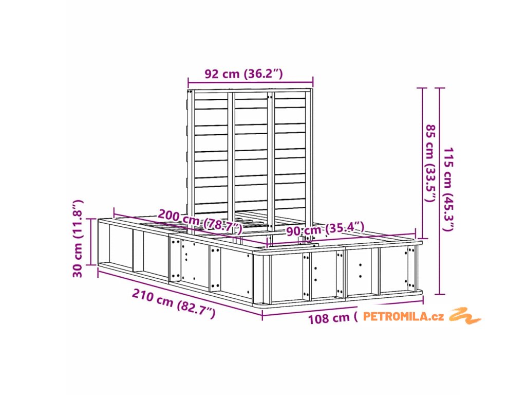 - Celkové rozměry: 210 x 108 x 30 cm (D x Š x V)