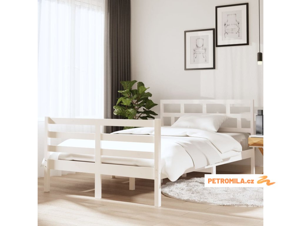 Rám postele bílý 135 x 190 cm Double masivní dřevo