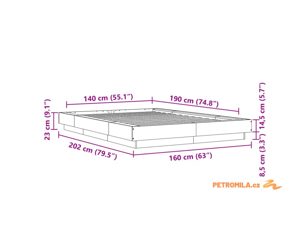 - Celkové rozměry: 202 x 160 x 23 cm (D x Š x V)