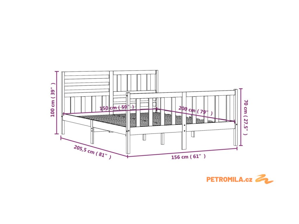 - Celkové rozměry rámu postele: 205,5 x 156 x 100 cm (D x Š x V)