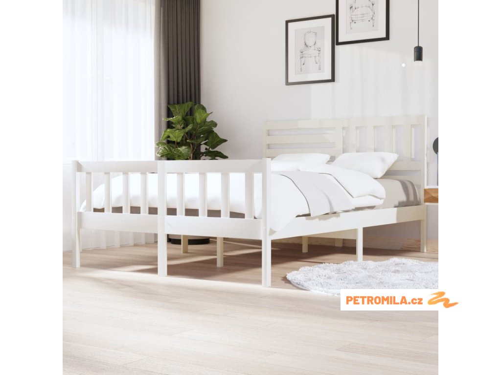 Rám postele bílý 150 x 200 cm King Size masivní dřevo