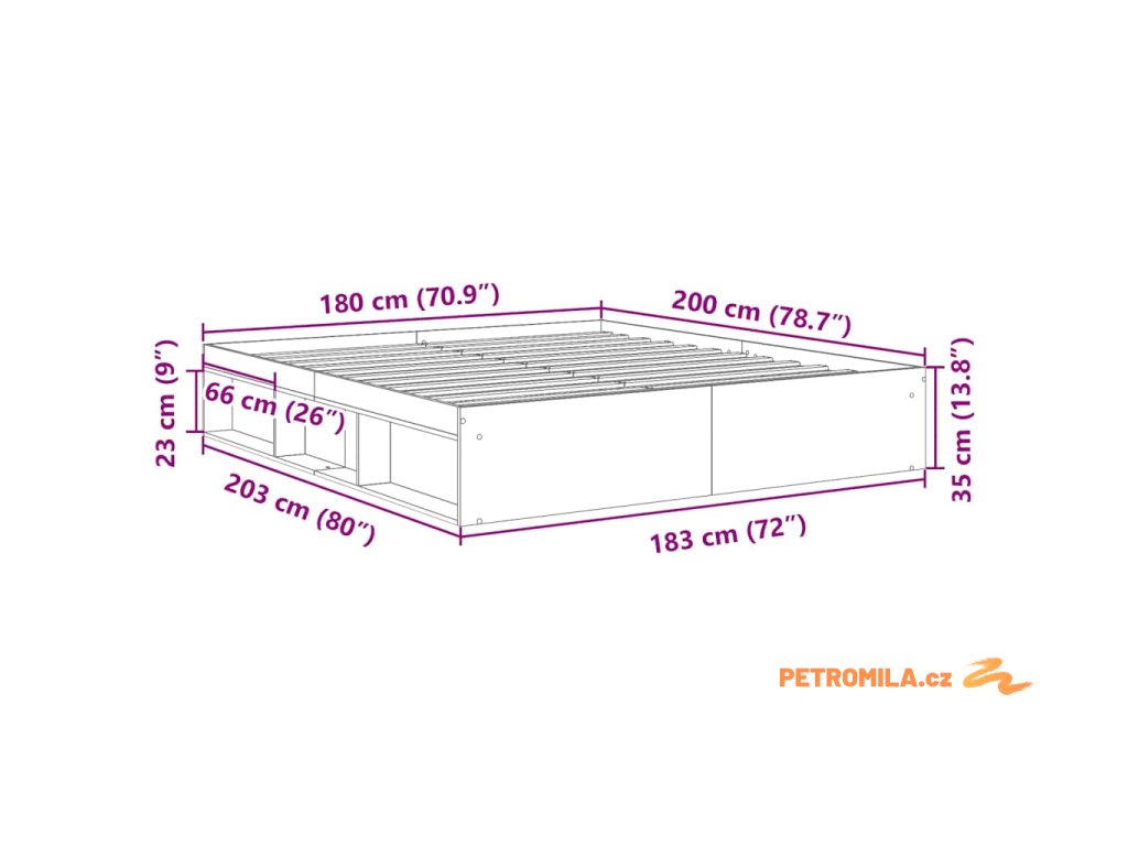 - Celkové rozměry: 203 x 183 x 35 cm (D x Š x V)