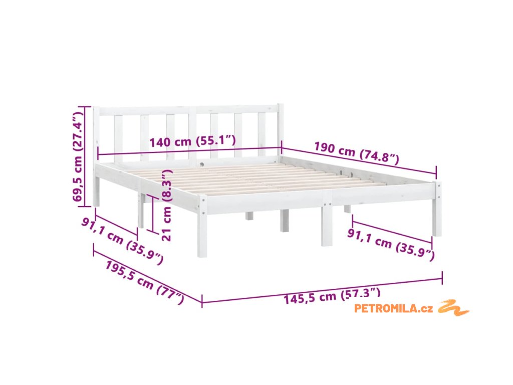 Rám postele je vyrobený z masivního borového dřeva, takže je mimořádně pevný a vyniká svou dlouhou životností. Postelový rám je vhodný pro matraci o rozměrech 140 x 190 cm. Na této posteli si můžete každou noc dopřát kvalitní spánek!