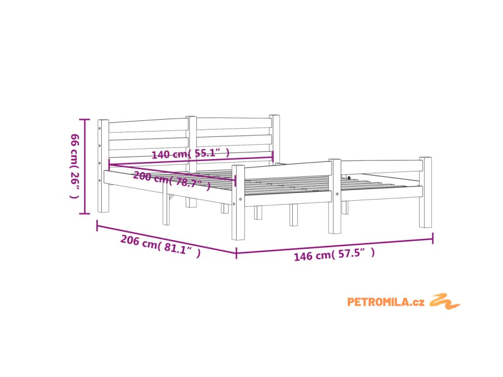 Rám postele bílý masivní borové dřevo 140 x 200 cm