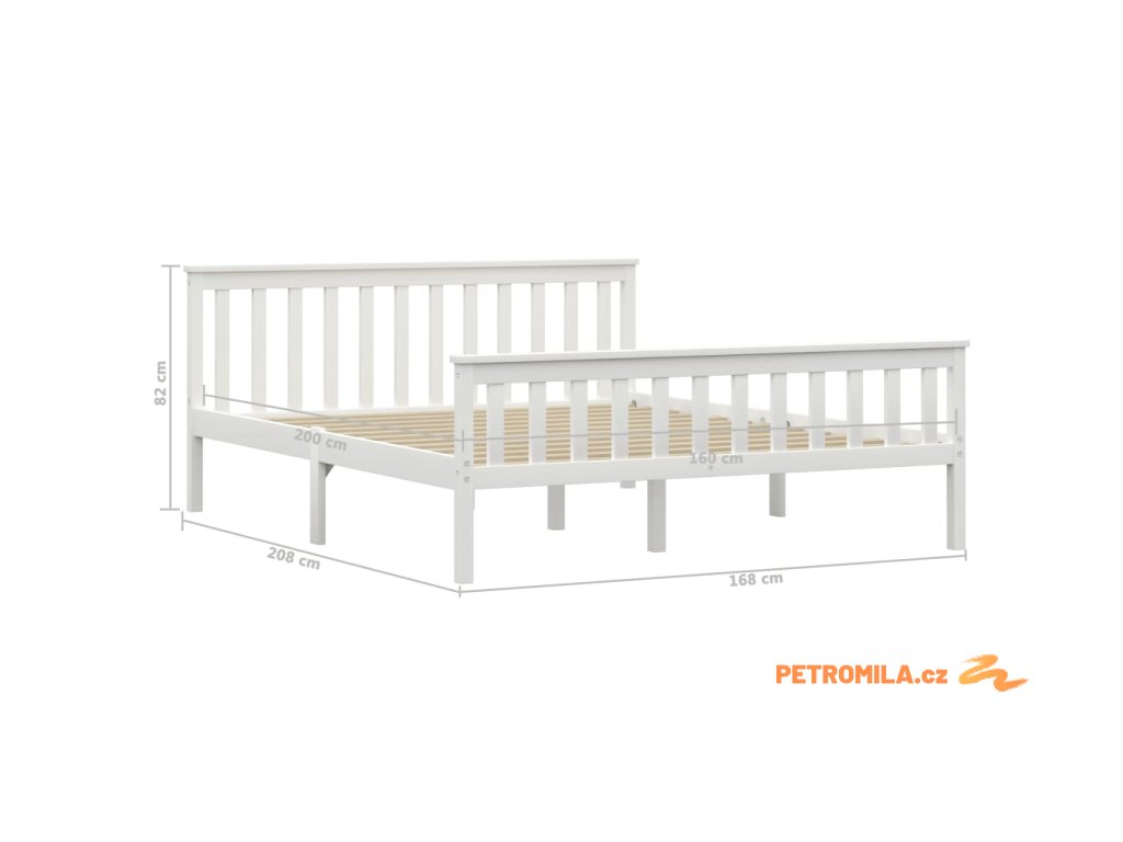 Rám postele bílý masivní borové dřevo 160 x 200 cm
