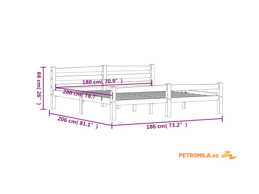 Rám postele bílý masivní borové dřevo 180 x 200 cm
