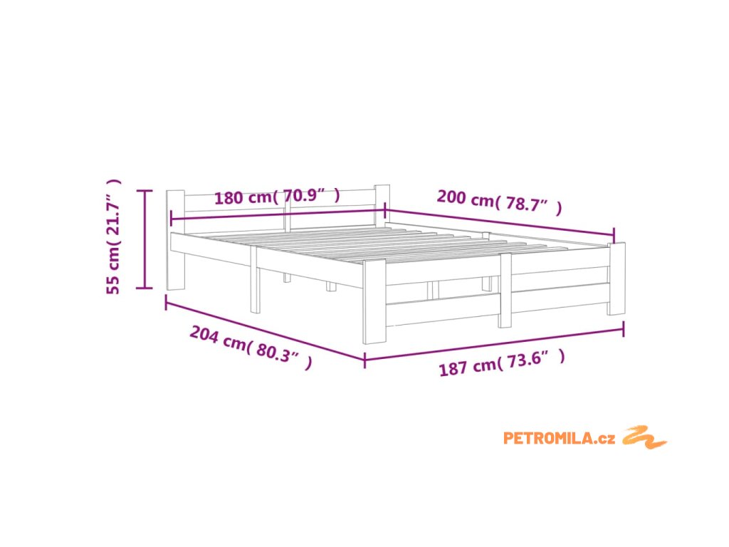 Rám postele je vyrobený z masivního borového dřeva, je tedy mimořádně pevný a má dlouhou životnost. Pevné překližkové lamely nabízejí potřebnou podporu a pohodlí. Je vhodný pro matraci o rozměrech 180 x 200 cm.