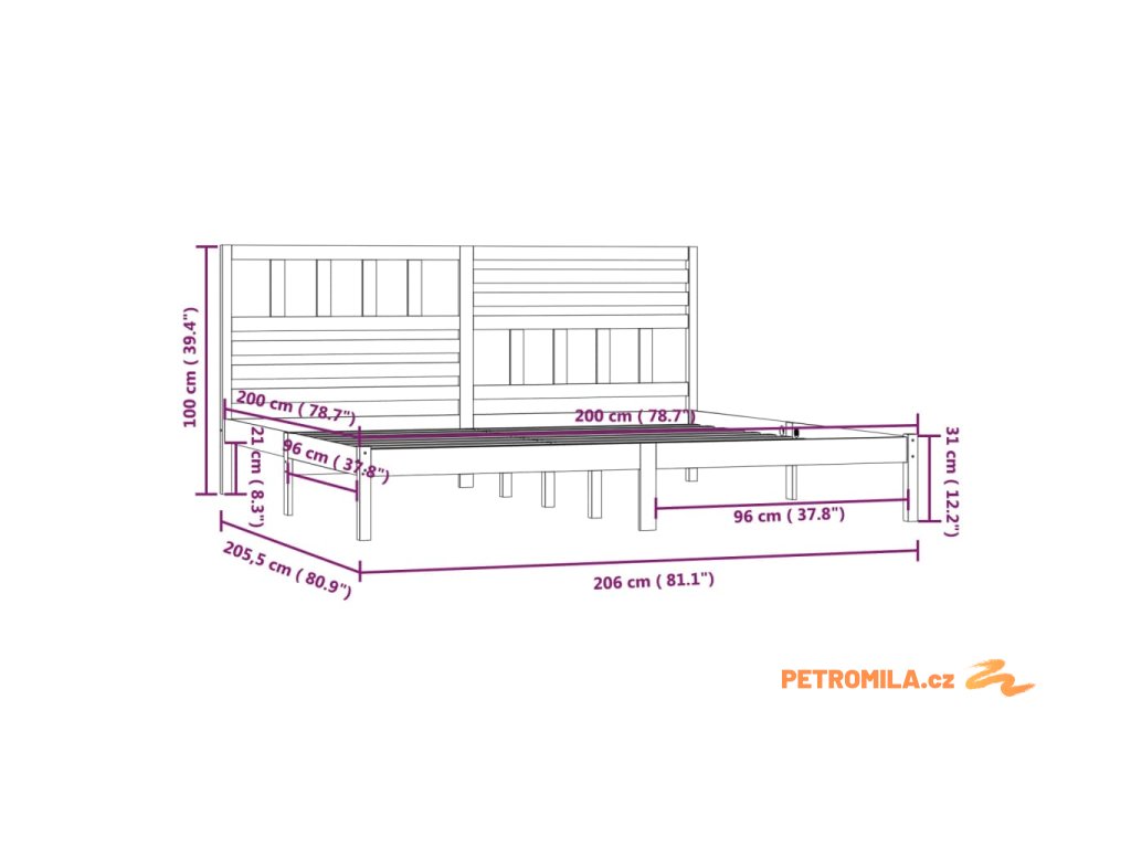 - Tento rám postele je vhodný pro matrace o rozměrech 200 x 200 cm.