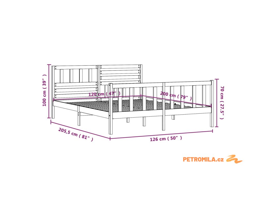 - Celkové rozměry rámu postele: 205,5 x 126 x 100 cm (D x Š x V)