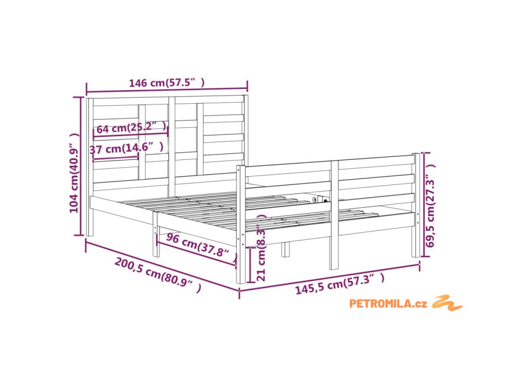- Rozměry čela postele: 146 x 4 x 104 cm (Š x H x V)