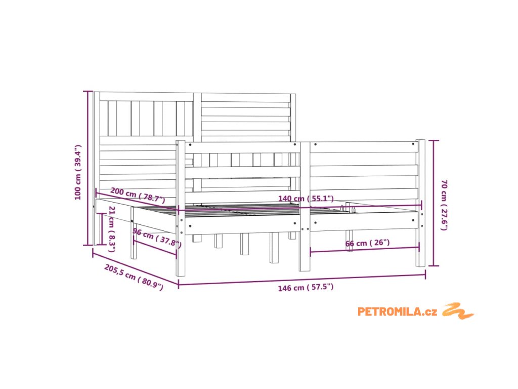 - Celkové rozměry rámu postele: 205,5 x 146 x 100 cm (D x Š x V)