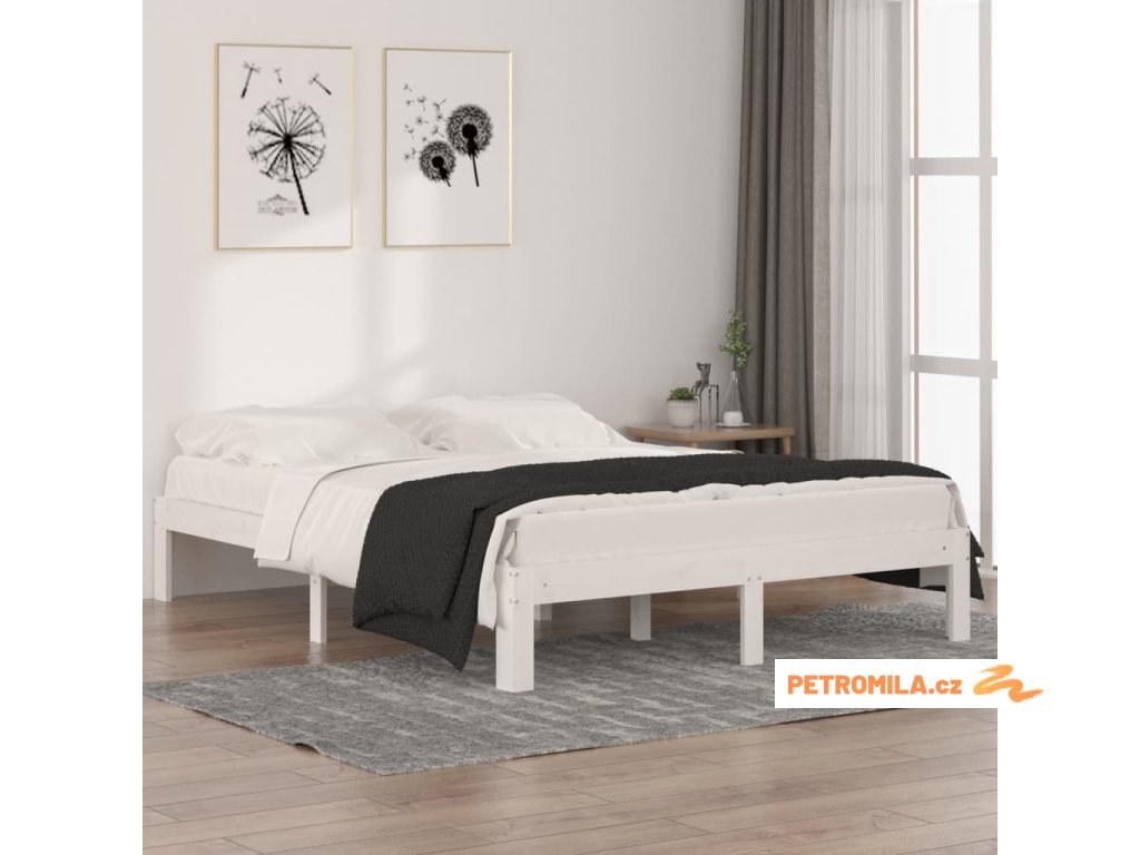 Rám postele bílý masivní dřevo 150 x 200 cm King Size