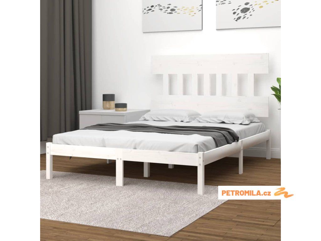 Rám postele bílý masivní dřevo 160 x 200 cm