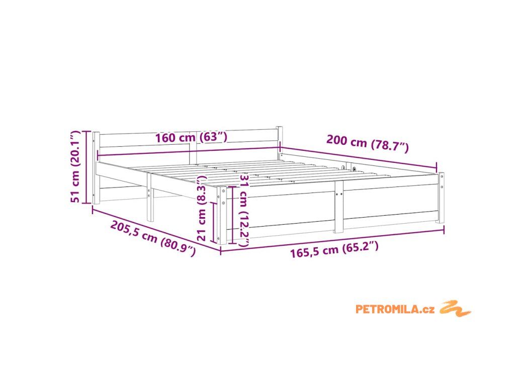 - Tento rám postele je vhodný pro matrace o rozměrech 160 x 200 cm.