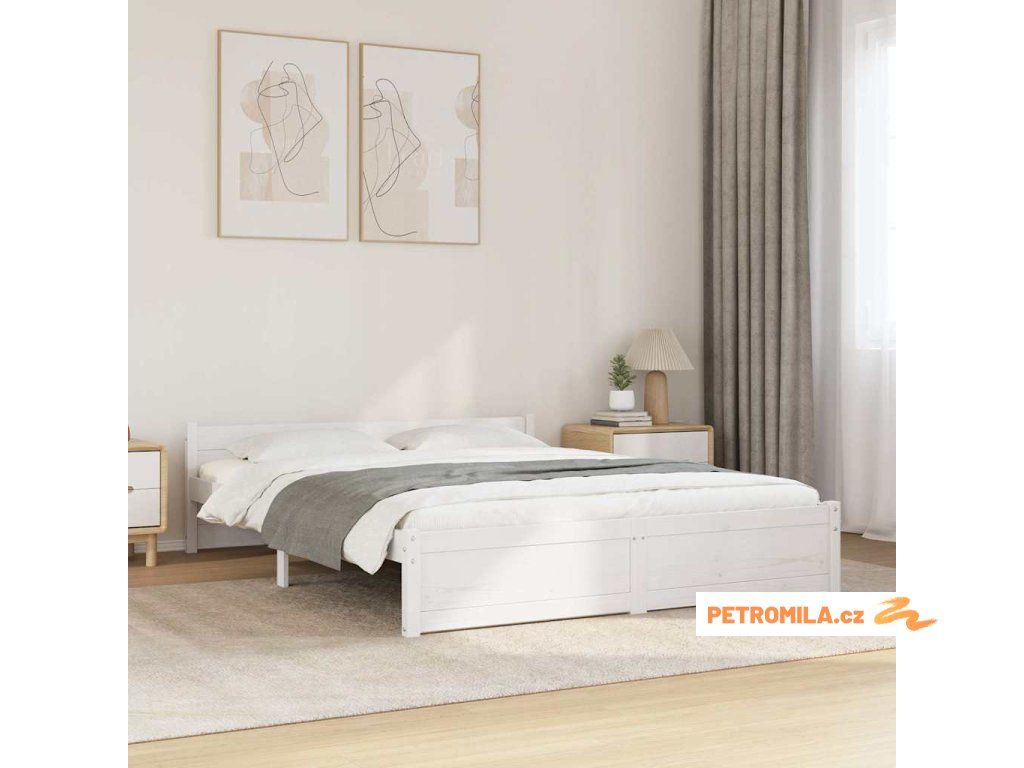 Rám postele bílý masivní dřevo 160 x 200 cm