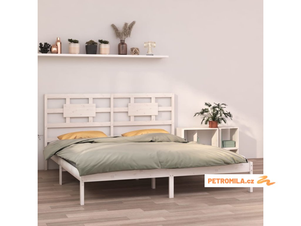 Rám postele bílý masivní dřevo 180 x 200 cm Super King