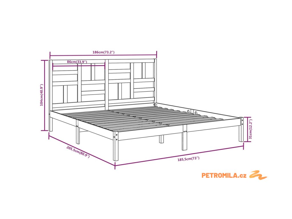 - Rozměry čela postele: 186 x 4 x 104 cm (Š x H x V)