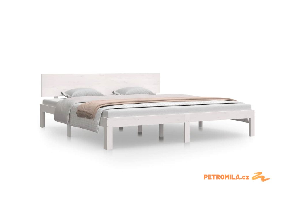 Rám postele bílý masivní dřevo 180 x 200 cm Super King