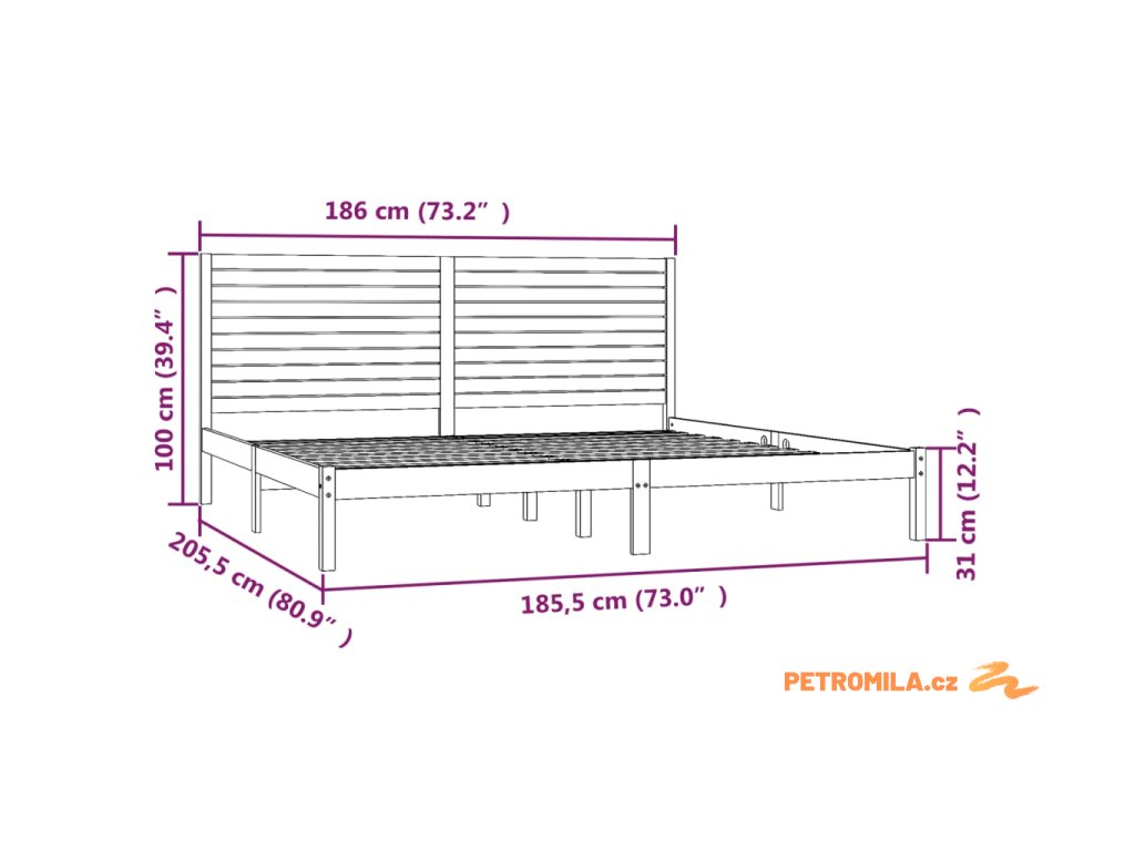 - Celkové rozměry rámu postele: 205,5 x 186 x 100 cm (D x Š x V)