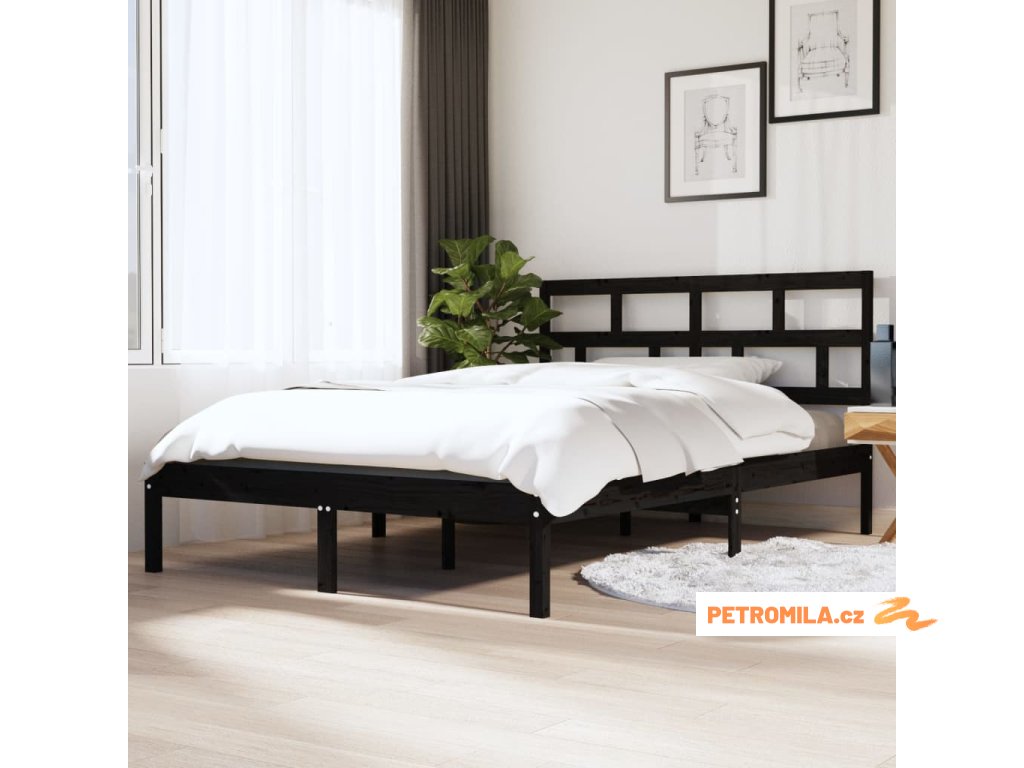 Rám postele černý 135 x 190 cm Double masivní dřevo