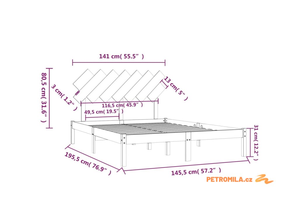 - Rozměry rámu postele: 195,5 x 145,5 x 31 cm (D x Š x V)