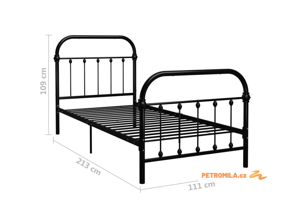 Rám postele černý kov 100 x 200 cm