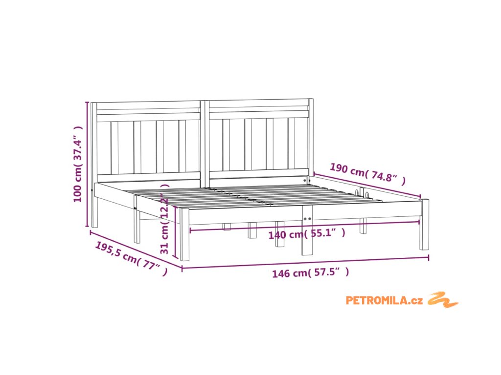 - Celkové rozměry rámu postele: 195,5 x 146 x 100 cm (D x Š x V)