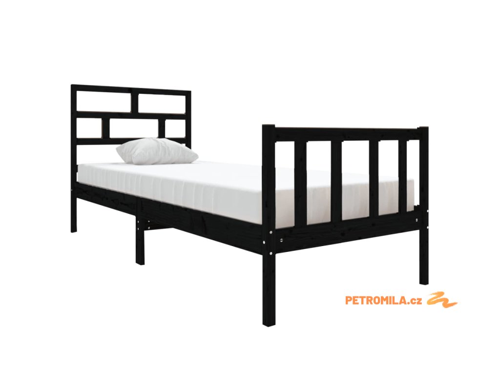 Rám postele černý masivní borovice 75 x 190 cm malé jednolůžko