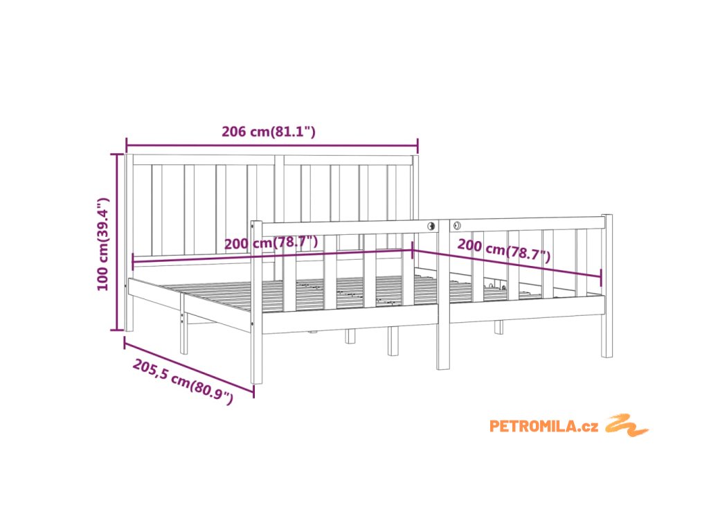 - Celkové rozměry rámu postele: 206 x 205,5 x 100 cm (D x Š x V)
